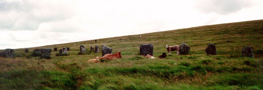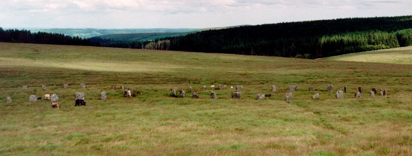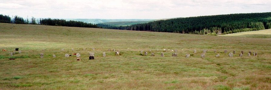 Access: From Fernworthy circle continue along the forest track to the edge of Fernworthy forest, crest the brough and you can see the circles half a mile south.