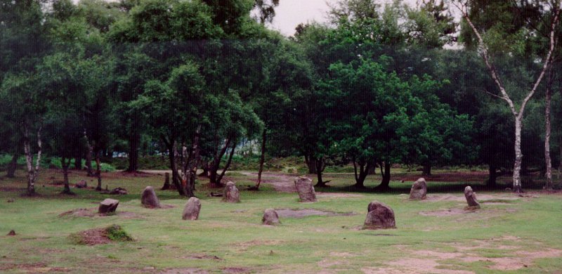 The stones are set in a low rubble bank, the tallest stone being 1m high.