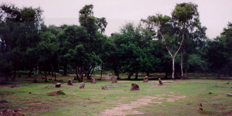 9 stones of millstone grit form a circle 11m in diameter with a central burial mound.