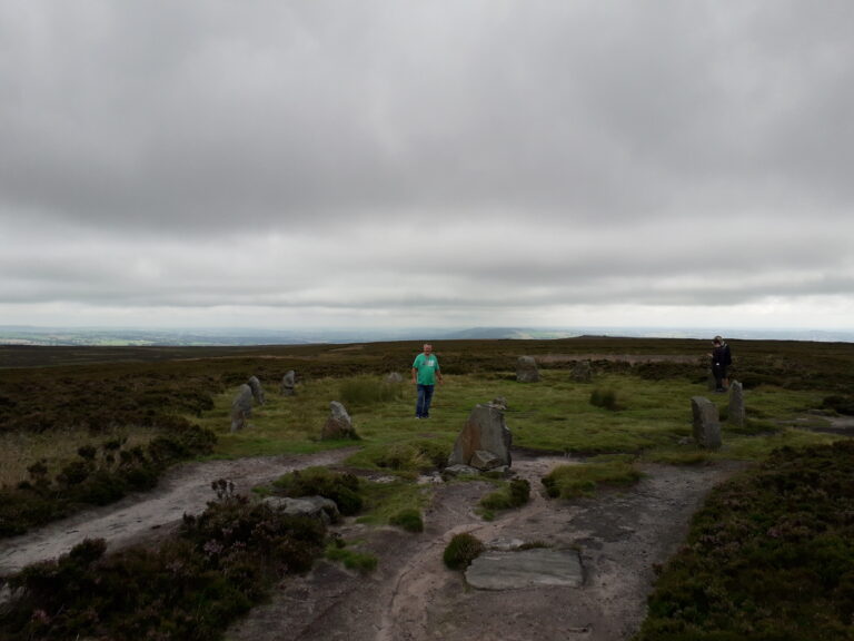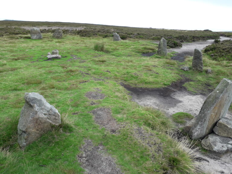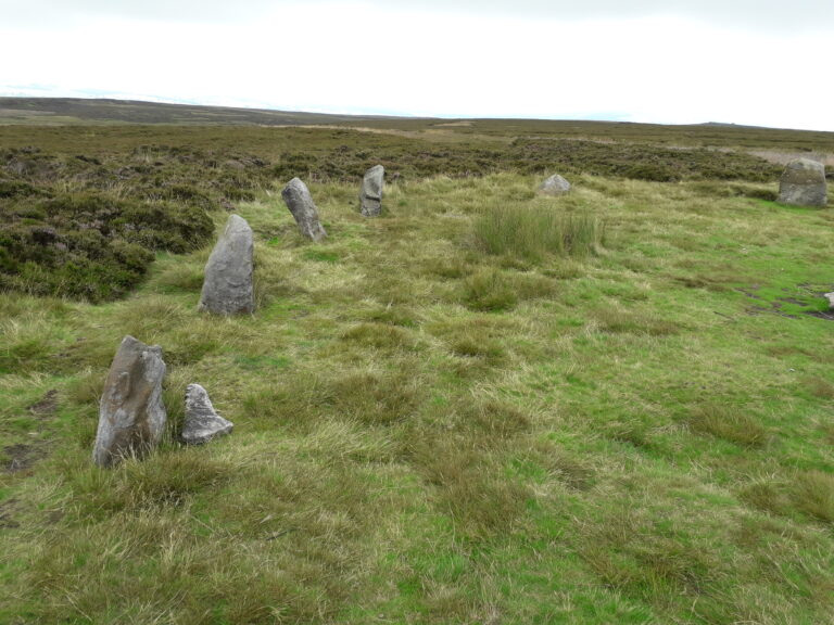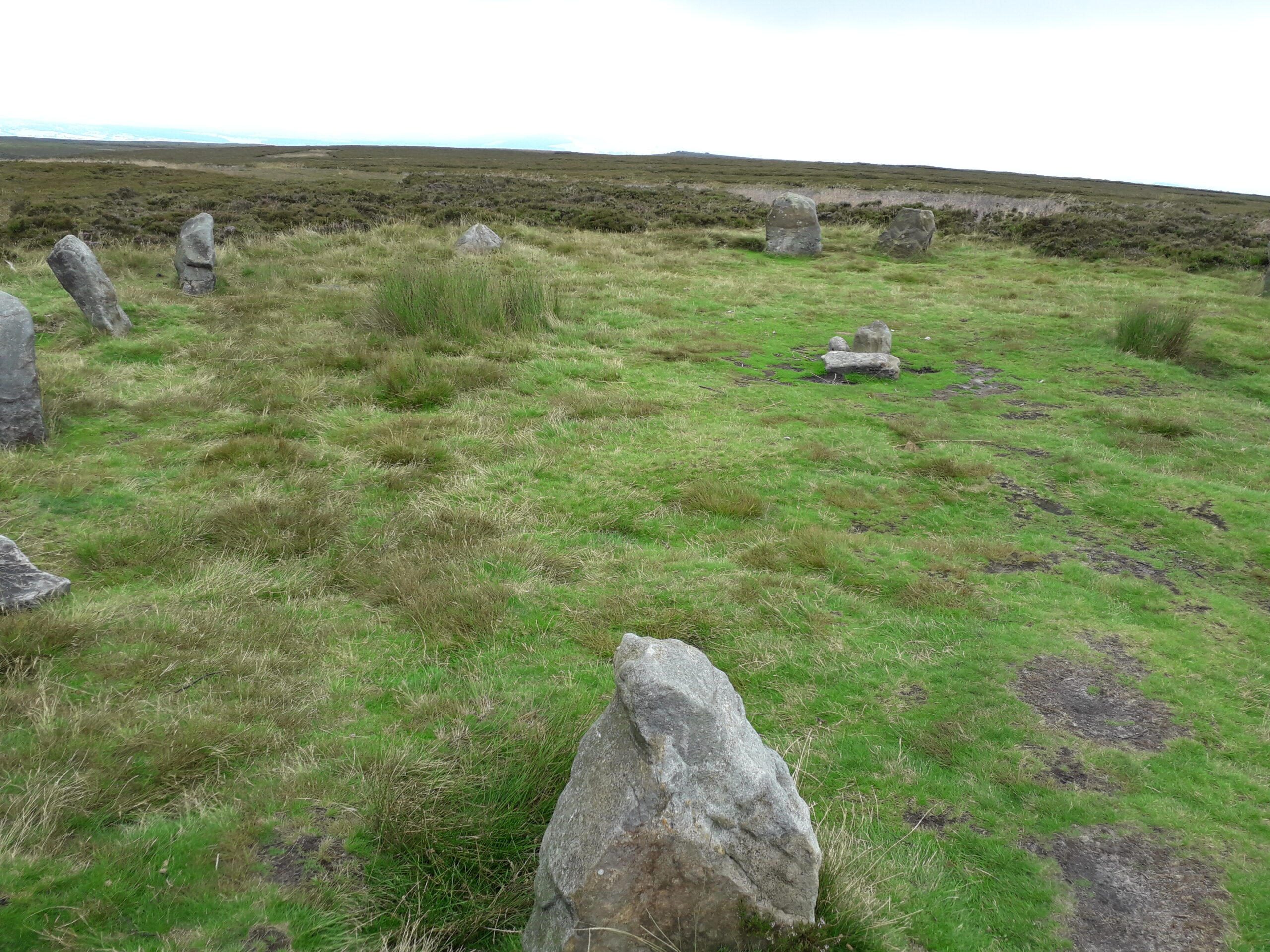 12 stones of local millstone grit remain of a circle about 15m in diameter.